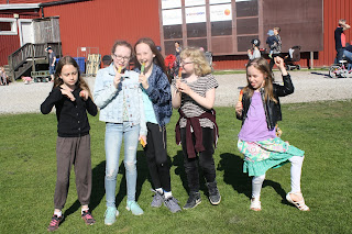 Både Frida o Klara var jätteglada över att ha tre kusiner som tittade på.